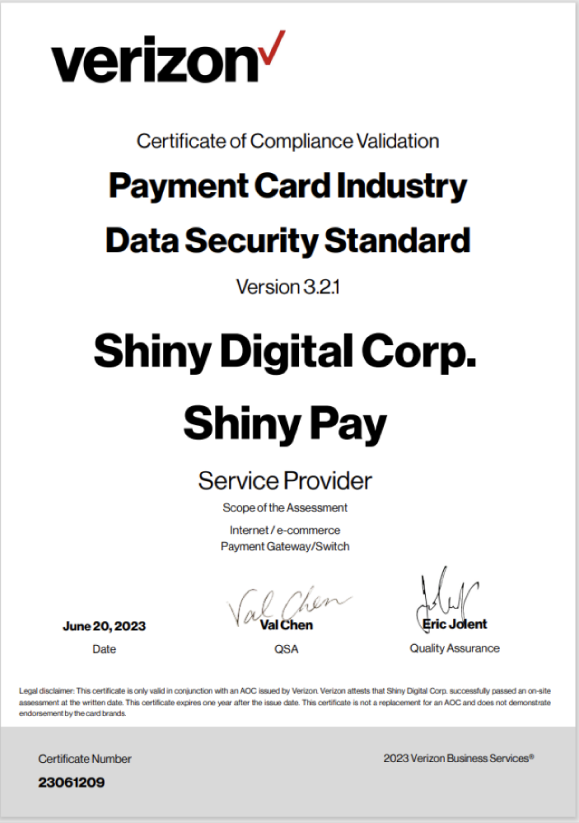Shiny Pay(統一編號:83000370)為第三方支付領導品牌,提供線上線下全通路販售商品所需的各種服務。。 我們先後取得台新、第一、聯邦、聯信(NCCC)…等多家銀行合作、四大超商代收代碼繳費服務,建立含信用卡刷卡、超商代收付、ATM、手機條碼…等完整的線上金流機制,致力於解決商家及消費者網路購物的各種問題,提升商家收款的便利性、消費者付款的資料安全及便利。持續創造予買賣雙方更便利的支付工具,從線上交易至線下刷卡支付服務(online to offline),以達到實體及網路消費無國界的最終境界!